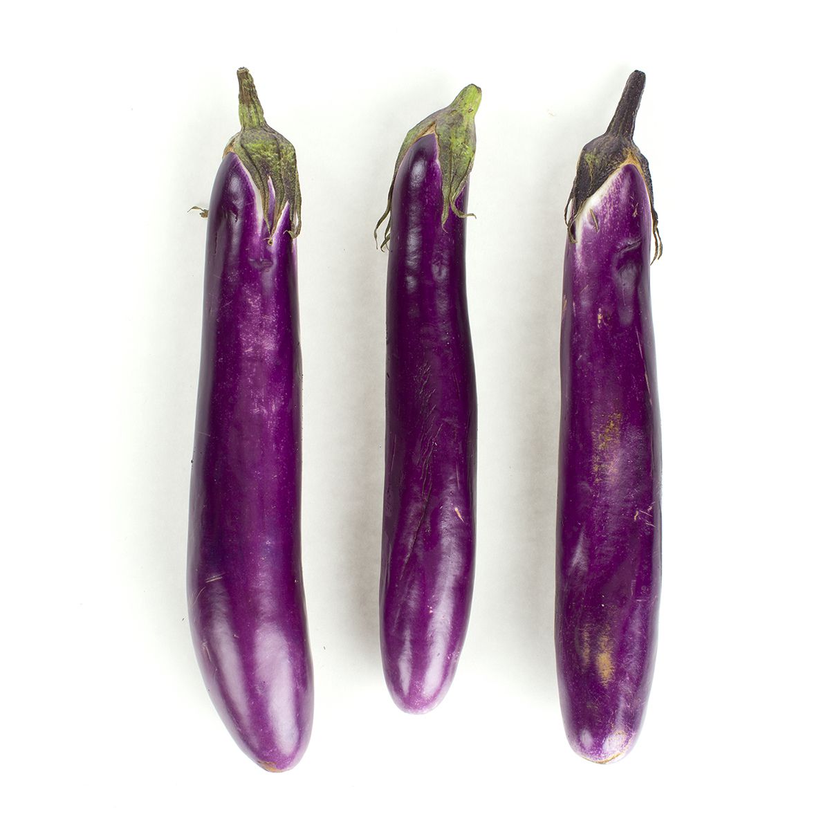 Dark purple-to-black skin, long and slender with smooth, sweet flesh. This Japanese variety eggplant is delicate and delicious with very few seeds. It cooks quickly and is an excellent choice for stir frying. Like all eggplant, their shelf life isn't long at all, so best to use within a few days.