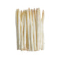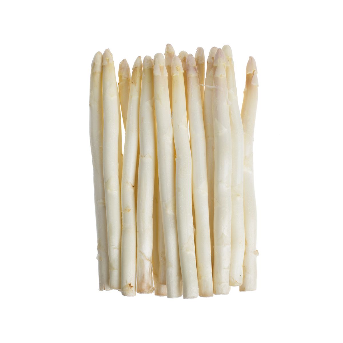Peruvian white asparagus stalks are slender and grow buried under soil so sunlight doesn't reach them. Like all white asparagus they are exceedingly tender and delicate, and less fibrous than green asparagus. Boil 5-7 minutes in salted water and serve simply with a drizzle of quality olive oil, aged Balsamic, salt and pepper. You can garnish with diced roasted red peppers & a dusting of fresh thyme.
