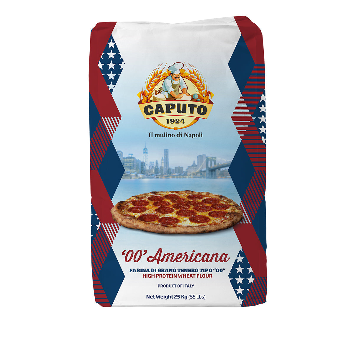 Caputo Americana 00 Style is ideal for classic pizza in any oven. It produces a flavorful crust with optimal hydration. The high quality protein and gluten result in a consistent dough. Caputo Americana 00 is Additive free. Milled slowly for optimal water absorption. Milled specifically for use at temperature between 500-600 degrees Fahrenheit.