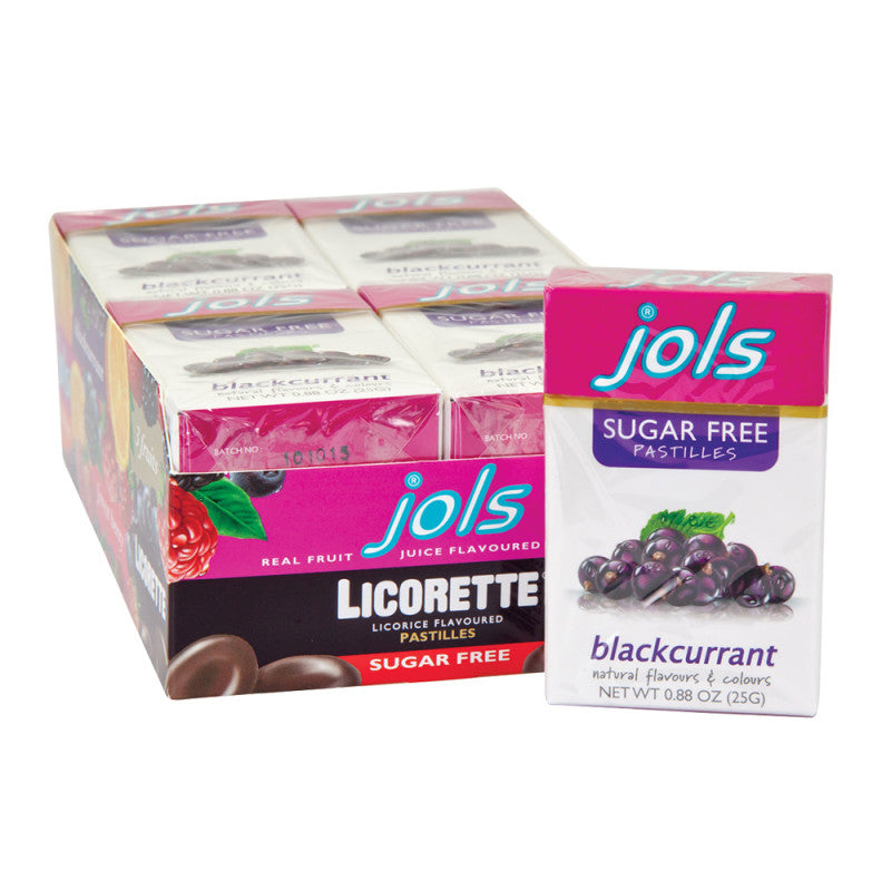 Consumers will keep returning for these tasty, sugar-free black currant pastilles from Jols. Imported from Australia, theyre bursting with natural fruit juice flavor to offer your customers tooth-friendly, sugar-free sweets. Attractive open top boxes make the perfect addition to your shelf merchandising and imported candy sections.