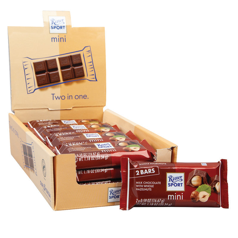 Today's snacking is all about little, everyday indulgences. Offer customers the best with Ritter Sport Mini Milk Chocolate with Whole Hazelnuts. Founded in Germany in 1912, Ritter Sport is known around the world for producing premium gourmet chocolate. The Ritter Sport Mini gives customers all the creamy milk chocolate, with whole roasted hazelnuts they love, in two mini bars. The packaging is instantly recognizable, while mini will appeal to health conscious customers.