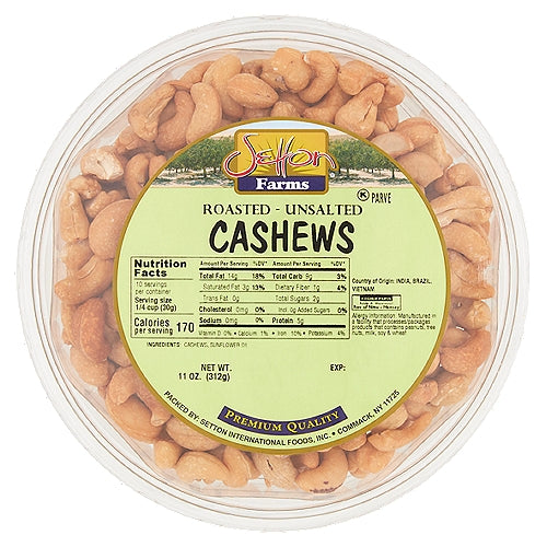 Setton Farms Roasted/Unsalted Cashews 14 Oz Tub