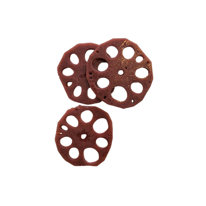 Discover the captivating beauty of each red lotus slice, distinguished by its intriguing natural internal pattern and vivid, natural red color. These slices are lovingly immersed in a brilliant red hibiscus and ginger syrup. This delectable offering, named 'Lotus Root Slices in Hibiscus & Ginger Syrup' for retail, is proudly presented by the Wild Hibiscus Flower Company. It's best stored in a dry location. This exquisite creation originates from Australia and is elegantly packaged in a 7 oz jar, available in a case of 6.